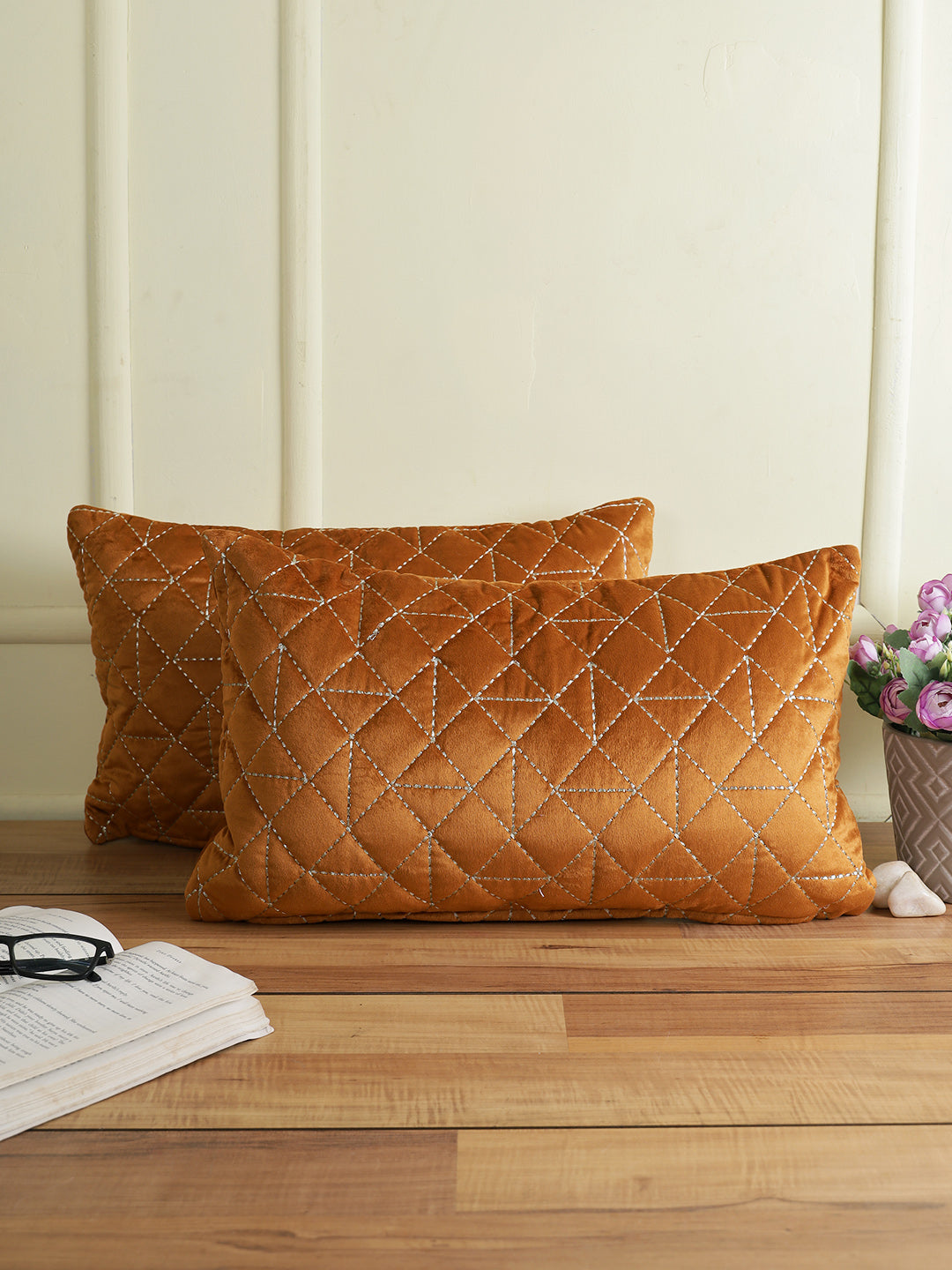 Eyda Super Soft Rust Color Set of 2 Quilted Cushion Cover-12x20 Inch