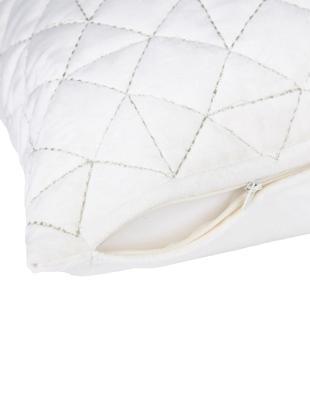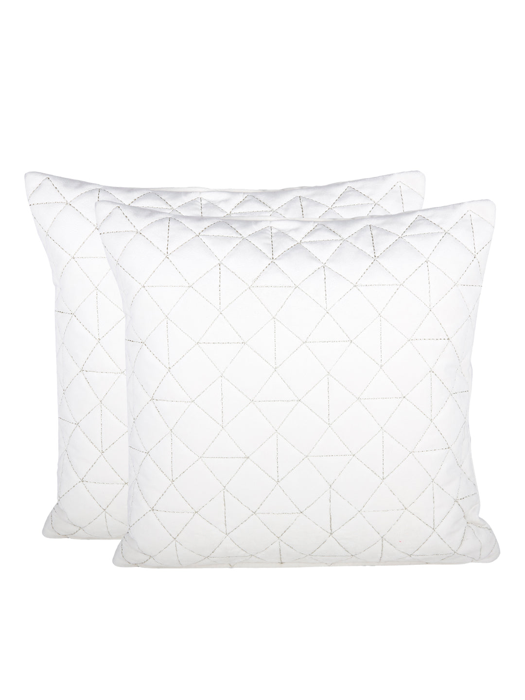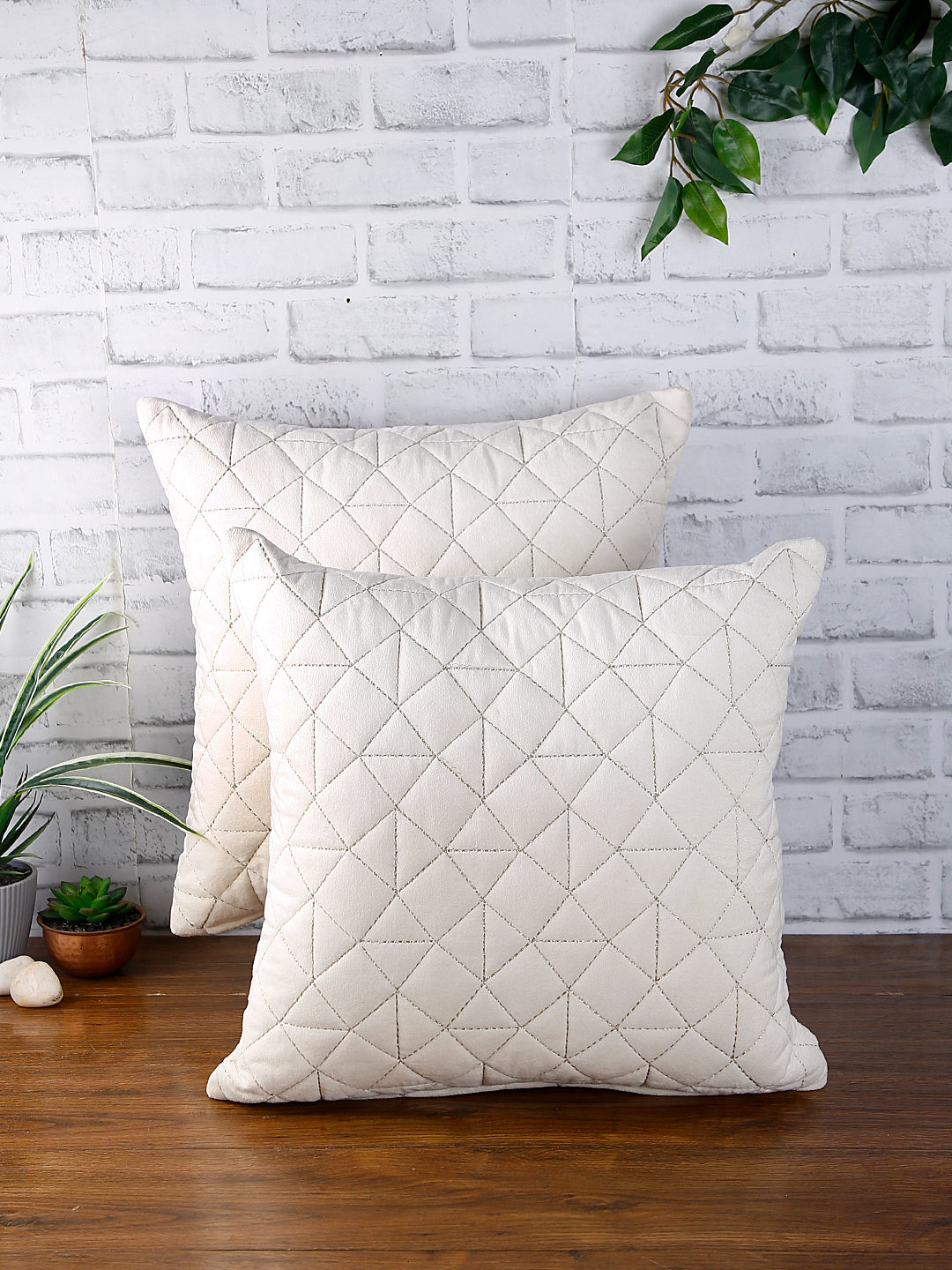 Eyda Super Soft Velvet Ivory Color Set of 2 Quilted Cushion Cover-18x18 Inch
