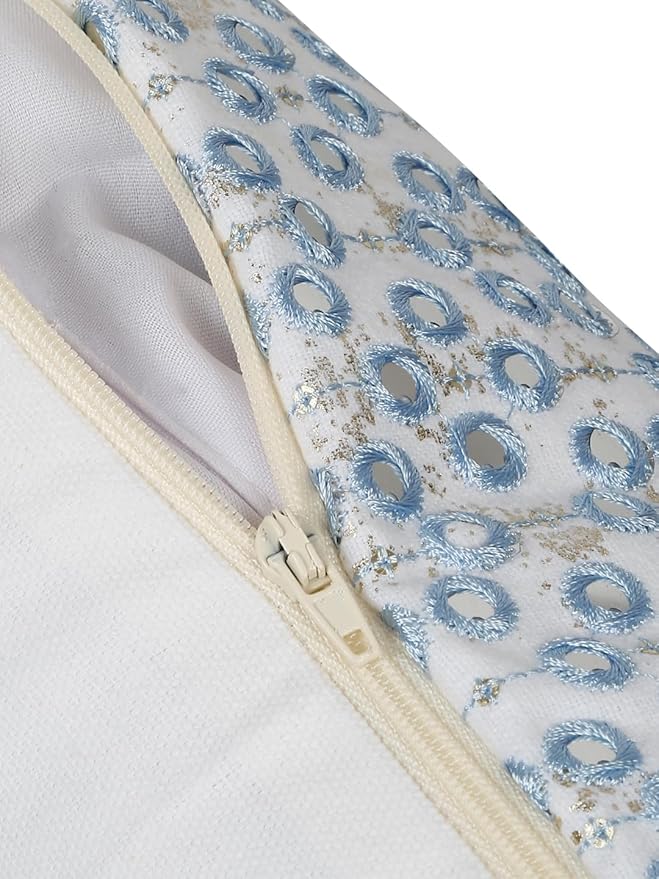 Elevate your home décor with this exquisite mirror work cushion cover, featuring intricate embellishments that catch and reflect light beautifully. The vibrant green fabric serves as a sophisticated backdrop for delicate mirror pieces meticulously hand-applied in traditional craftsmanship. Perfect for adding texture and visual interest to sofas, beds, or accent chairs, this piece combines timeless artisanal techniques with contemporary design sensibilities. The reflective embellishments create dynamic play of light throughout your space, making it an ideal choice for those seeking distinctive, statement-making home accessories that showcase authentic craftsmanship.