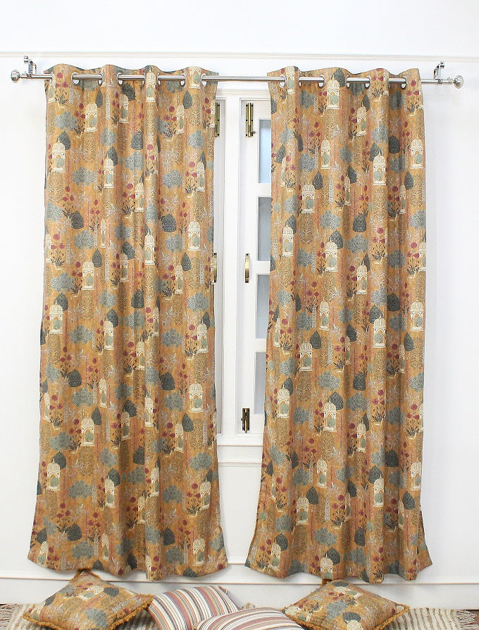 PICHWAI PRINT LINEN LONG DOOR CURTAIN 2 PCS