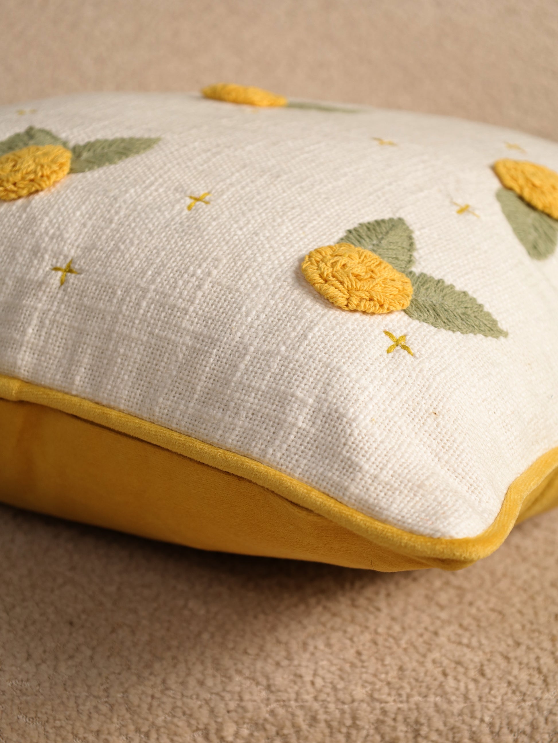 Pink & Yellow Floral Embroidered Cushion Cover