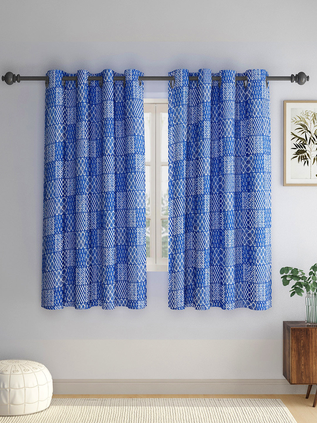 Rajsthan Decor Screen Print Cotton Floral Window Curtain Set of 2 (51x62 Inch)