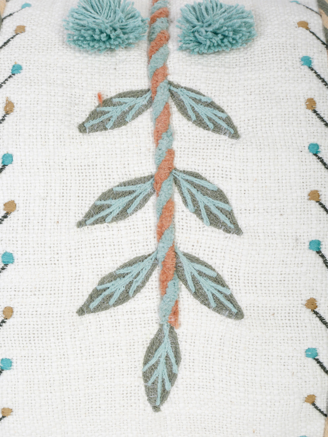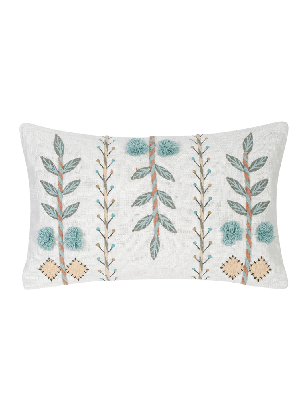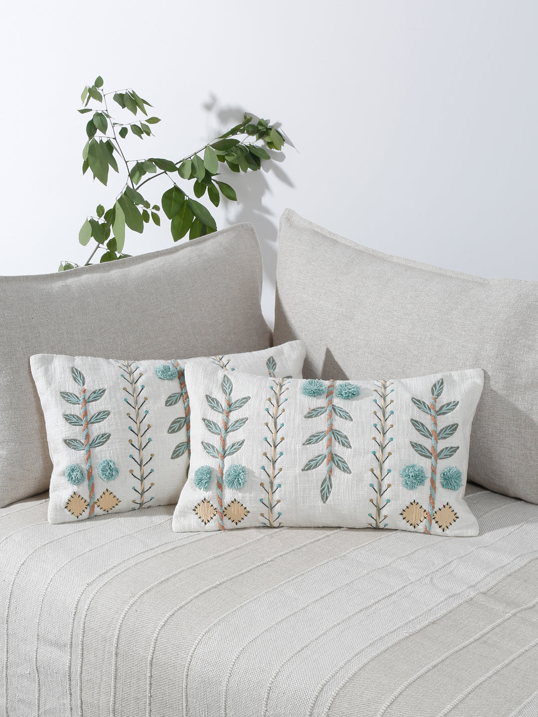 Set of 2 White & Aqua Cotton Embroidered Square Cushion Covers