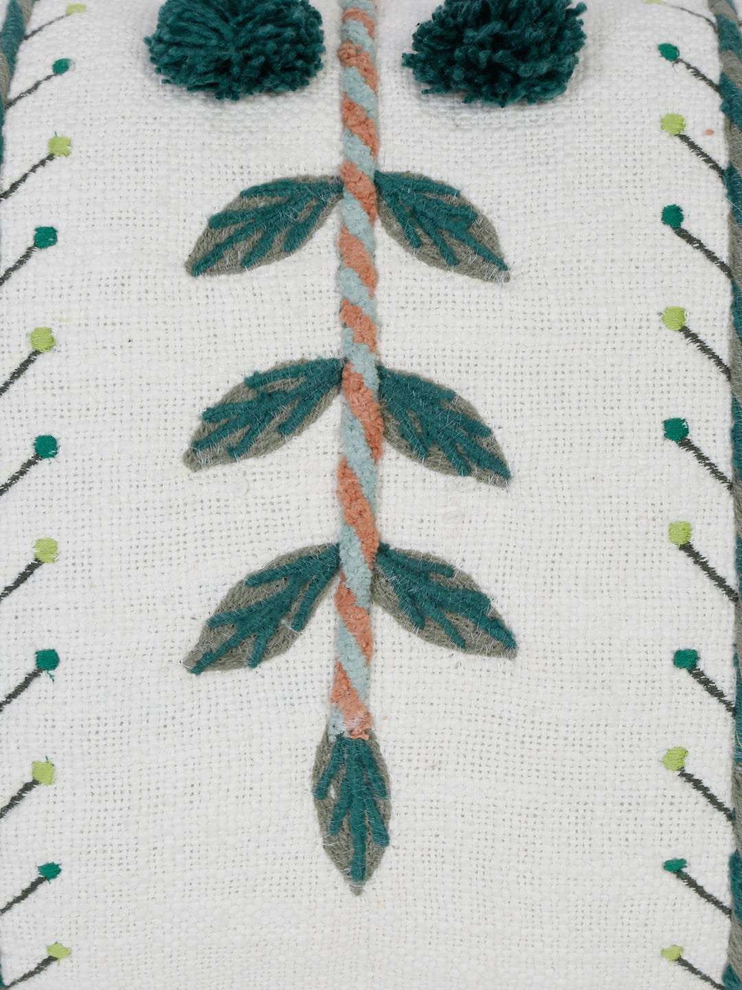 Set of 2 White & Green Cotton Embroidered Square Cushion Covers