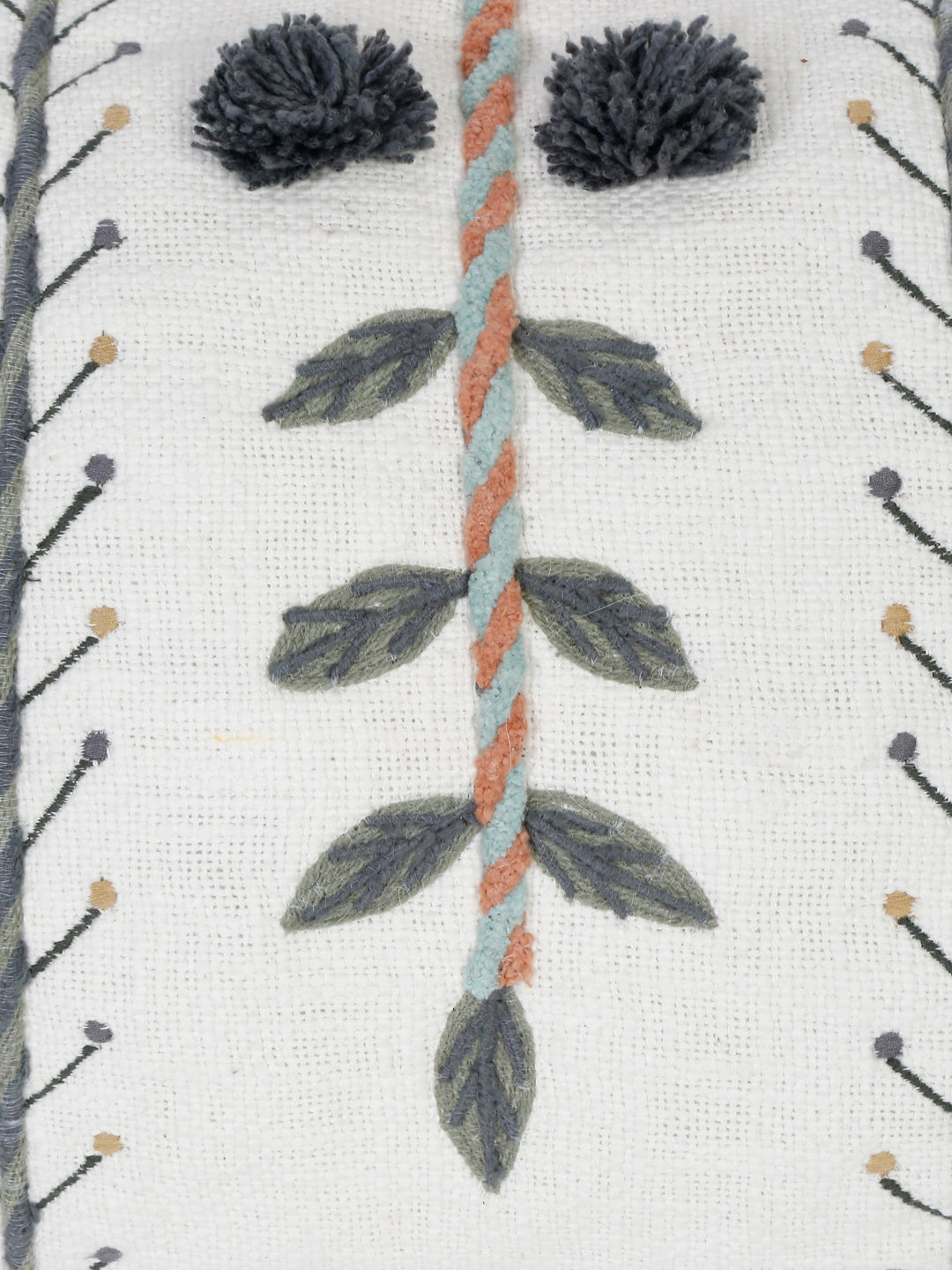 Set of 2 White & Grey Cotton Embroidered Square Cushion Covers